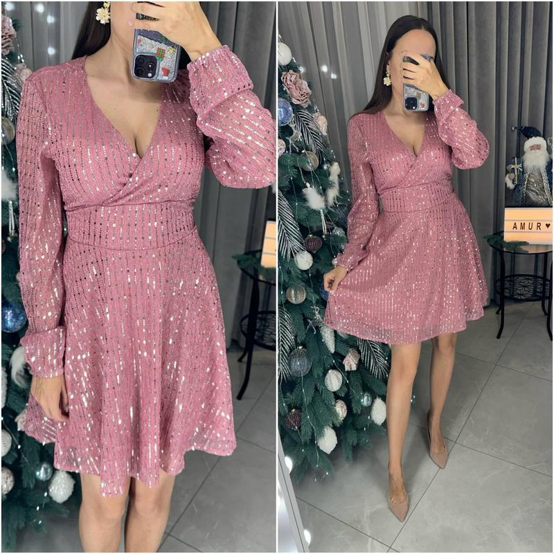 Сукня Модель 892 Размер 42-46 Сукня Модель 1892 Размер 48-50 и 52-54 Ткань стрейч с пайеткой Турция, подкладка. Нежное и яркое одновременно праздничное платье не оставит Вас незамеченной. Резинка сзади на поясе подойдет любому типу фигуры, выгодно подчеркнет талию и красиво ляжет по спинке. Рукав на резинке снизу Платье благородно переливается и струится. Цвета стальные и фреза с серебряной пайеткой