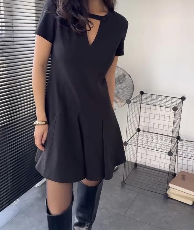 Сукня чорна міні українського бренду The Lace. Дуже гарна юбочка. Якісно пошито. На підкладці. В складі є вовна. Одягнено 2 на захід. Сідає трохи вільно. Розмір М. Мої параметри: 88/68/96 Обхват плечей: 43 см Обхват грудей: 48 см Довжина: 85 см