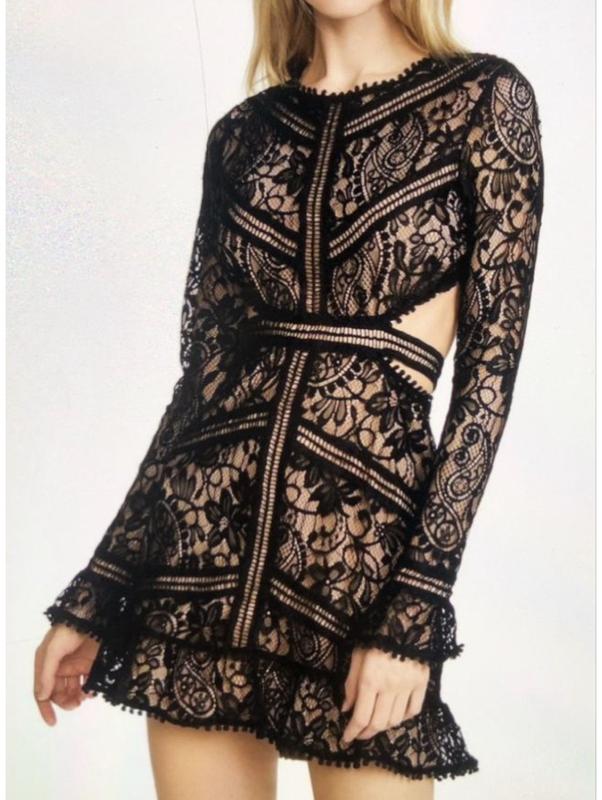 Мереживна сукня коротка , стандартна S , 80 см довжина виробу,. бежевий підклад , застібка блискавка і завʼязки .
