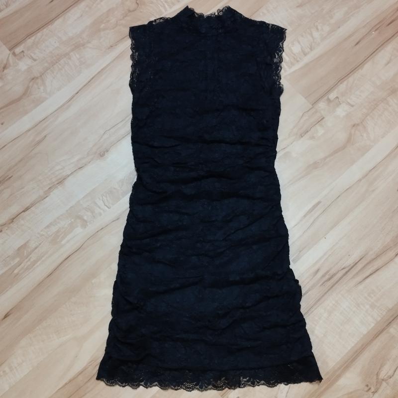 Платье черного цвета короткая, гипюровая, хорошо тянется. На размер S или XS. По спинке молния.