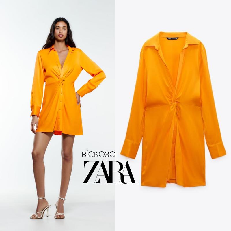 ✨ Атласное платье-рубашка ZARA ✨ Размер от производителя: S Длина: 85 см Грудь: 47 см (+ небольшой запас за счет драпировки) Талия: 37 см Стегна: 50 см Плечи: 40 см Рукав: 62 см Состав: 97% вискоза, 3% эластан Состояние: отличный, без нюансов Яркое атласное платье-рубашка насыщенного оранжевого цвета от ZARA. Имеет эффектную драпировку в области талии, красиво подчеркивающую силуэт. Мягкая вискозная ткань с легким блеском создает элегантный и одновременно чувственный образ. Подойдет как для вечернего выхода, так и для стильного дневного лука в сочетании с каблуками или сапожками.