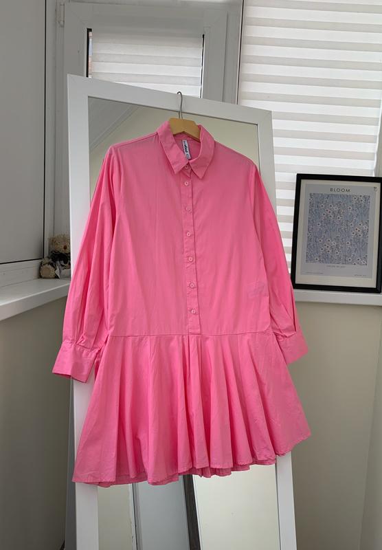Рожева сукня-сорочка Розмір XS/S Півобхват грудей 47,5 см Довжина 90/92 см Півобхват талії 47,5 см Рукав 58 см Рукав від горла 70,5 см Матеріал: бавовна Стан: ідеальний