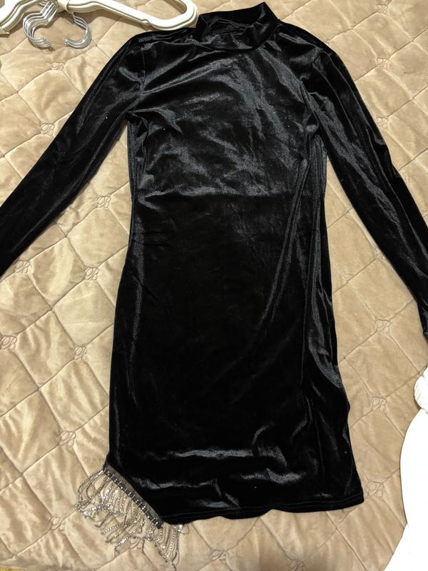 Чорна велюрова суконька зі стразами на нозі, та з відкритою спинкою, розмір с-м