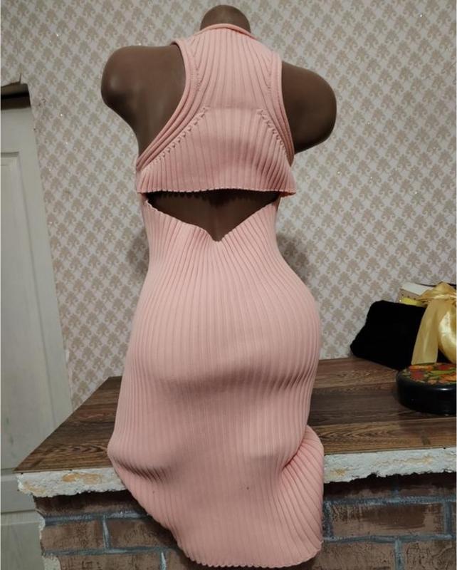 Сукня з гарною спинкою Тканина дуже еластична, бірка зі складом відсутня Орієнтовні мірочки від первинного продавця: Пог 25/ тягнеться у напівобхваті до 43 Пот 24/ тягнеться у напівобхваті до 53 Поб 27/тягнеться у напівобхваті до 56