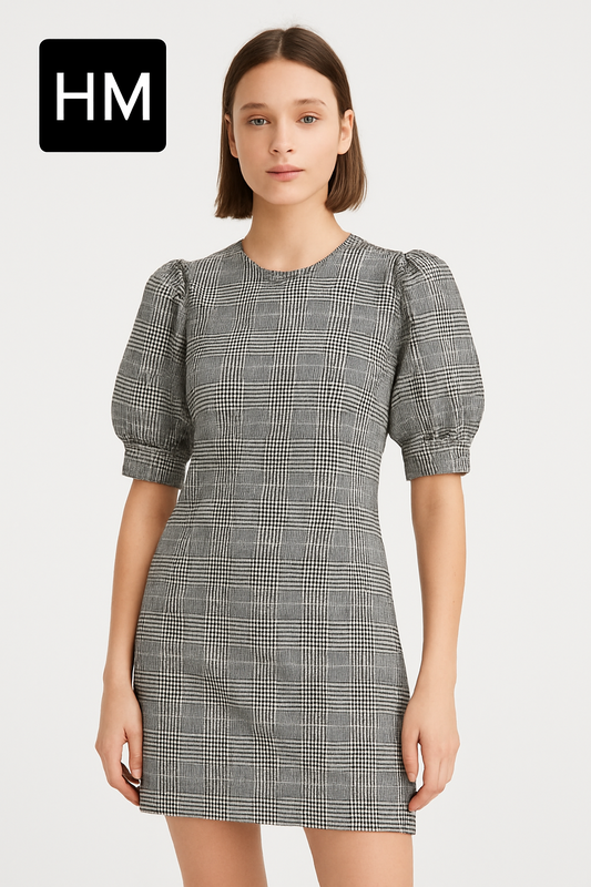 женское стильное платье мини футляр серого цвета в клетку с рукавами фонариками, в идеальном состоянии 😉