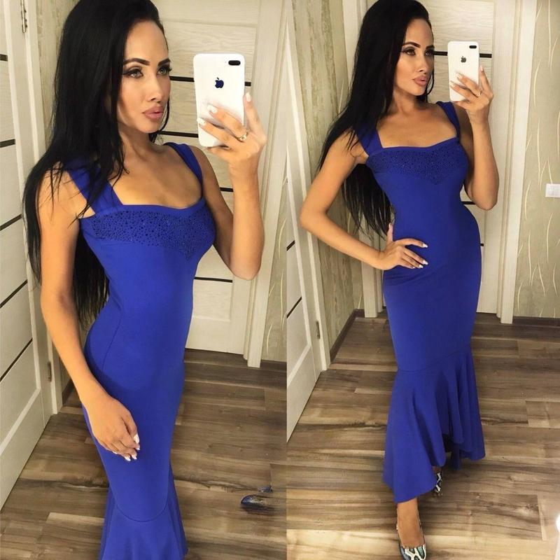 Платье #214 Красный 42-44,44-46 Синий 42-44,44-46 ткань крепит дайвинг, декорированный камень