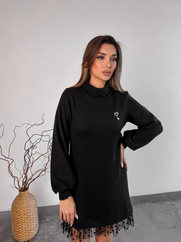Плаття, фото реал 🏷️ Ціна - 780 грн ⠀ ▫️Розміри: 42-44, 46-48 ▫️Тканина: ангора рубчик, фатин ▫️Кольори: мокко, сірий, чорний, молочний ⠀ Прикраса в комплекті. Тканина добре тягнеться та тепла. ⠀ Заміри напівобхват: 42/44 ОГ 45-50см ОТ 43-48см ОБ 50-58см Довжина 84см+6см фатин Довжина рукава 63см ⠀ 46/48 ОГ 50-55см ОТ 48-53см ОБ 55-60см Довжина 86см+6см фатин Довжина рукава 63см ⠀ Модель 466