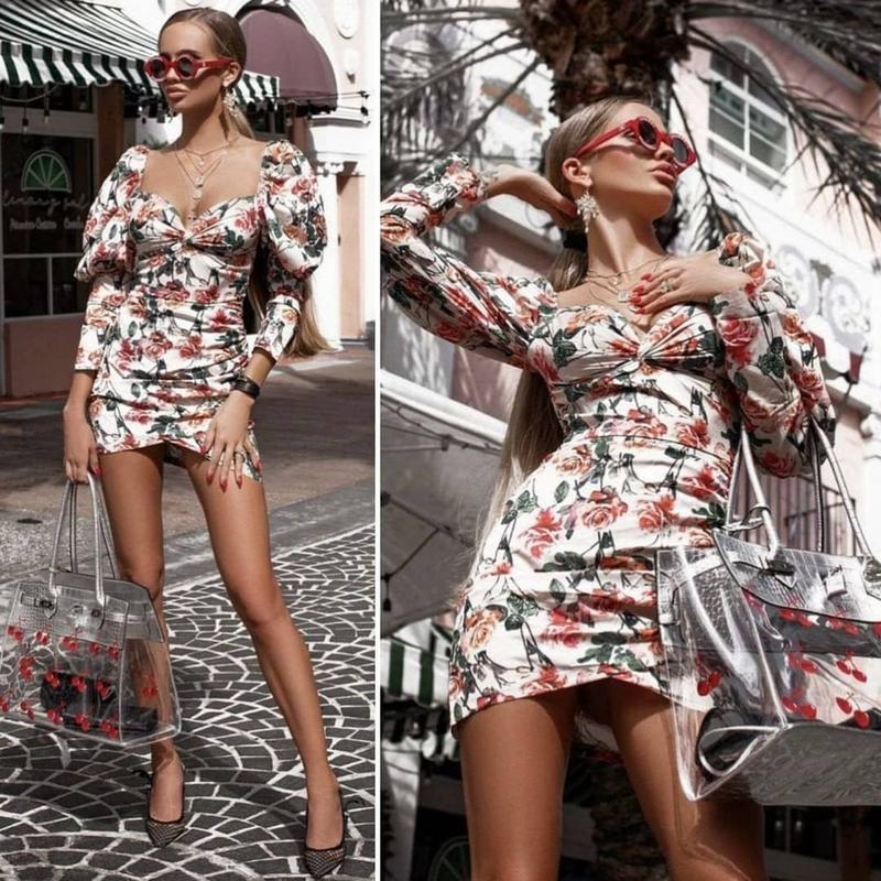 Платье с пышным рукавом*квадратным вырезом* с цветочным принтом