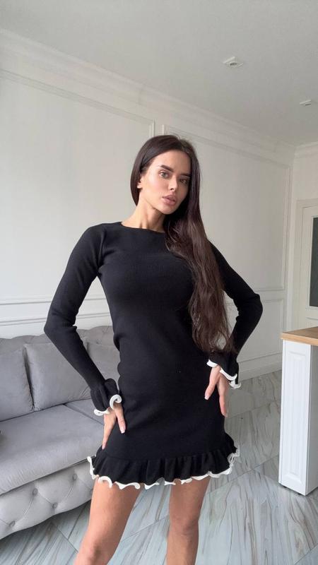 ✨НОВИНКА✨ ✅Арт 1062 Стильна чорна сукня з ніжними воланами 🤍 Ідеально підкреслює фігуру та додає образу жіночності. Комфортний трикотаж + акцентні манжети і низ — виглядає елегантно та трендово. 🖤 Розміри: S–L 📐 Довжина сукні 80 см, довжина рукава 60 см, плечі 35 см 🏷️ ціна 1390 грн