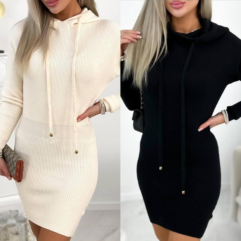 Сукня Мод 2082 Тканина рубчик- вʼязка Размеры 42-44; 46-48; 50-52 Цвета как на фото молоко и черный Хорошо тянется С капюшоном Хорошее качество
