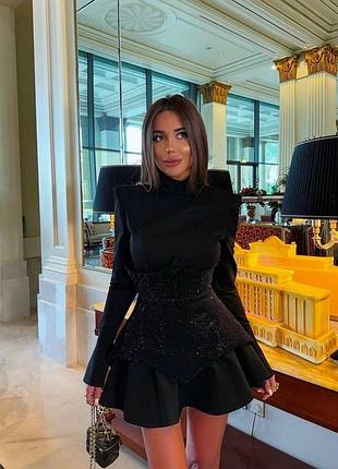 #жіночасукня ▪️Сукня ▪️Артикул: S808/419 ▪️Розмiр: 42-44, 44-46 ▪️Тканина: ▫️креп костюмка ▫️корсет-північне сяйво ▪️Колір: чорний ▪️Ціна 930 грн