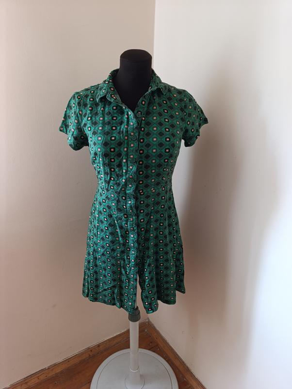 Продам платье-халат 36 размер. Замеры: ширина плеч 43, полуобхват груди 40, длина платья 76.Без дефектов и повреждений.