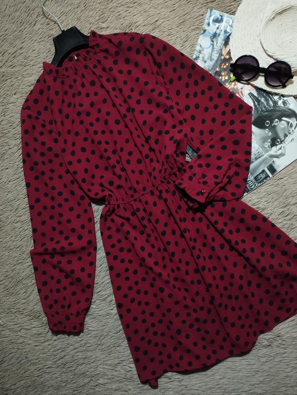 В отличном состоянии, есть незначительный дефект на плече (последнее фото), не очень заметно, в цене учтены. Красивое платье в горошек с объемными рукавами. Тканина легка, не тягнеться. Выглядит супер 😍 Размер 10/38/М, но смотрите по замерам Замеры (полуобхват): Груди 47 Талия 32 (резинка тянется до 48) Стегна 62 Рукав 58 Длина от плеча 84
