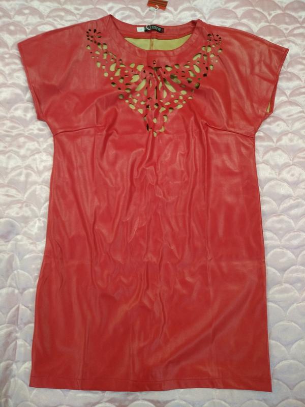 Красное платье из кожзама. Размер: L (46) Замеры L Длина 80 см Обхват поясу 92.