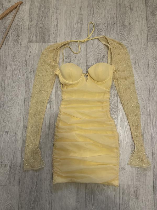 Нарядна святкова ЖОВТА сукня плаття від Oh Polly. Розшита бісером та перлинами. Рукава кльош з розрізами напівпрозорі. Сукня добре сідає по фігурі, підкреслює жіночі форми. В наявності розмір s-м. Сток, нова з біркою. Можливий торг. Запитуйте…
