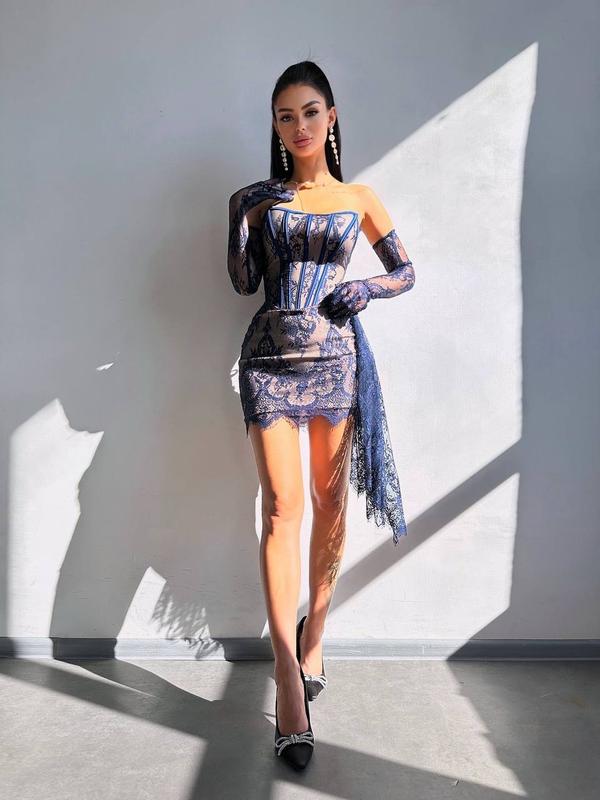 Сукня міні зі шлейфом та рукавичками Розмір: S,M,L ▫️тканина: атлас , мереживо, трикотажна підкладка ▫️розмір: S та М ( L +200 грн) Артикул: 19265