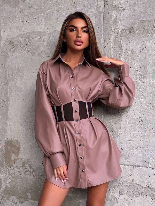 Сукня-сорочка з корсетними елементами з еко-шкіри Розмір: S,M,L ▫️тканина: еко-шкіра ▫️розмір: S та М ( L +200 грн) Артикул: 19274