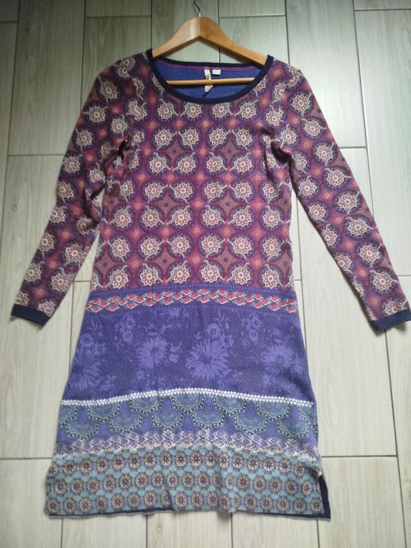 платье теплое, основной состав вискоза и шерсть, с интересным узором размер 10 или 38 длина 100 см. ширина 55 см в талии 45см. в идеальном состоянии без дефектов.