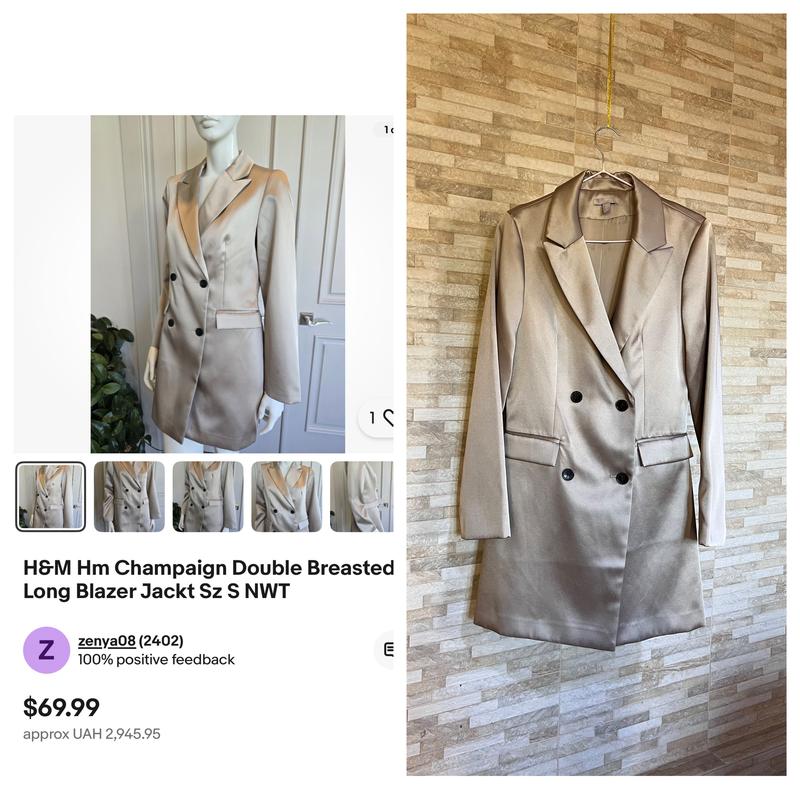 Сукня /піджак .Треба попрати всередині .є пару плям .Ціна на б/у 70$.Заміри.груди 46/47.Довжина 87,плечі 38.рукав 62. Вітаю всіх ,дякую що завітали на мою сторінку .Я працюю офіційно,ФОП