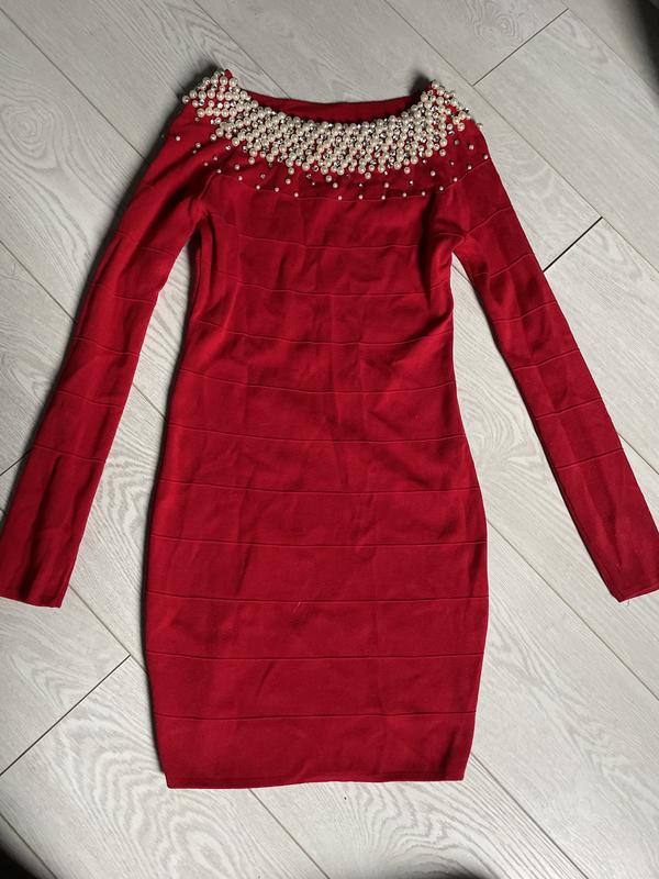 Стильне та елегантне червоне плаття з довгими рукавами. Верх прикрашений об’ємним декором із перлів та намистин, що красиво підкреслює зону декольте та додає образу святковості. Плаття м’яке, приємне до тіла, добре тягнеться та підкреслює фігуру. Ідеально підійде для свята, фотосесії, дня народження або романтичного виходу. Довжина по спині 80см Довжина рукава від плеча 65см Напів обхват грудей 39см Напів обхват талії 33см