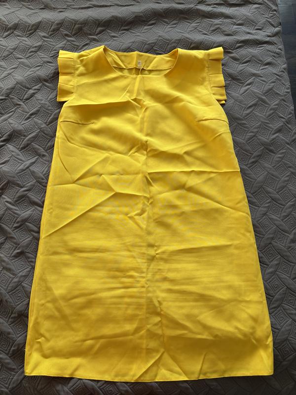 Літня ярка сукня Насичений жовтий колір Цікава оборка на плечах Тканина костюмка На наш 44-46 розмір Заміри на фото Дефектів немає