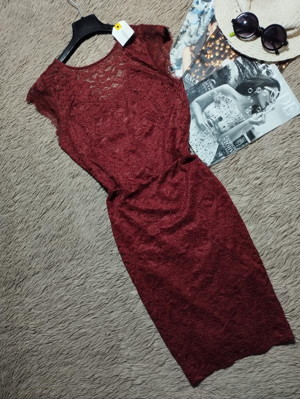Новая, с биркой. Красивое кружевное платье по фигуре. Ткань легкая, есть подкладка, тянется. Сзади молния. Размер 8/36/S, но смотрите по замерам Замеры (полуобхват): Грудь 39 (тянется до 45) Талия 31 (тянется до 37) Бедра 40 (тянется до 48) Длина от плеча 90