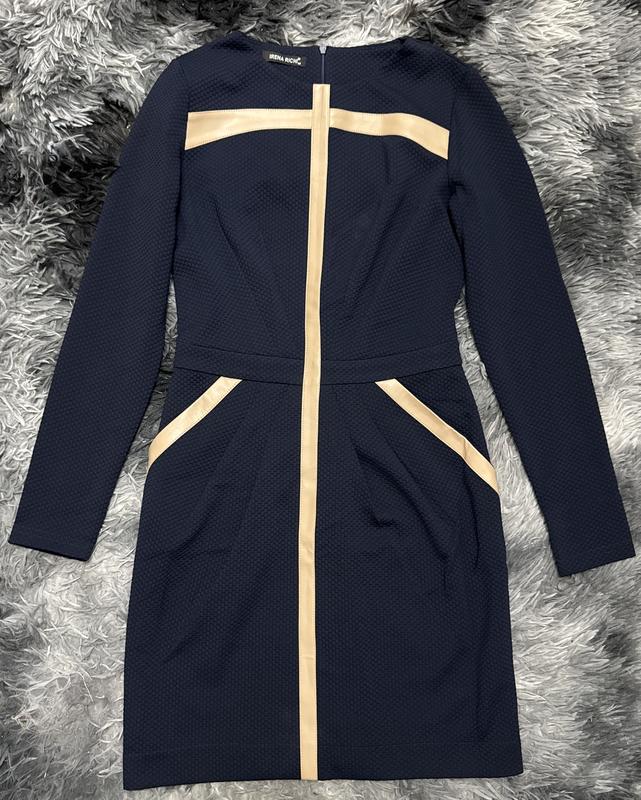 Елегантна темно-синя сукня Irena Richі 🥰🥰🥰 з акцентними бежевими вставками. Модель з довгим рукавом, приталеним силуетом та декоративними вставками спереду, які візуально витягують фігуру та підкреслюють талію. Тканина фактурна, щільна, добре тримає форму. Ідеальний варіант для роботи, офіційних заходів чи ділових зустрічей. Зручні кармани по боках 😍 Особливості: • Розмір: М (44/46) • Колір: темно-синій + бежеві акценти • Довгий рукав • Стильні контрастні вставки спереду • Якісна, щільна тканина • Застібка блискавка ззаду Стан: новий Підійде тим, хто любить стриманий та стильний одяг із акцентом на фігуру 😍