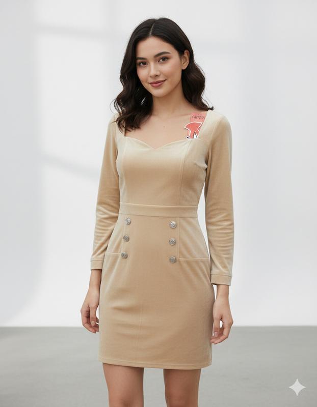 Стильна бежева сукня з м’якого замшевого матеріалу, який приємно лягає по фігурі та створює вишуканий силует. Модель із відкритою лінією плечей, довгим рукавом та декоративними ґудзиками спереду, що додають образу вишуканості й легкої елегантності. Ідеально підійде для вечірніх виходів, побачень або особливих подій. Особливості: • Матеріал: м’яка штучна замша • Колір: беж • Відкрита лінія плечей • Довгі рукави з ґудзиками • Декоративна подвійна лінія ґудзиків спереду • Гарно підкреслює талію • Застібка-блискавка ззаду • Стан: нова, з біркою Розмір М ( на ог та об до 100) Всі бірки на фото, фото на собі не роблю