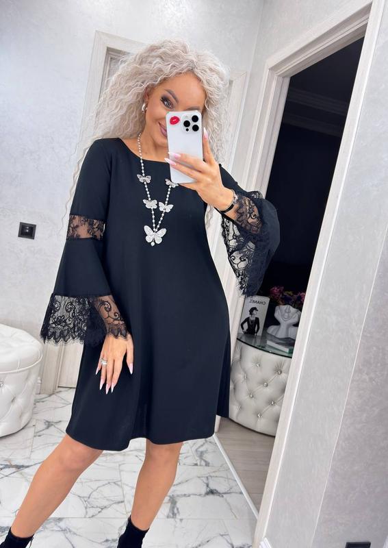 Платье с кружевом #482 Ткань креп-дайвинг, французское кружево Размеры : S (42-44), M (46), L (48) Длина платья 85 см, длина рукава 62 см (в размере S) пар)
