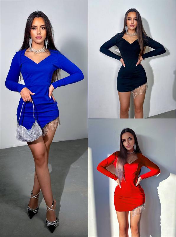 Платье декорировано бахромой из страз Мод: 529 ▪️Ткань: крепдайвинг ▪️Размеры: 42-44, 46-48 ▪️Цвета: черный, электрик, красный ▪️Отличное качество. ▪️Фото реал! Декорировано по дороге бархромой с камнями. Очень красиво сияет и переливается на солнце и при искусственном освещении