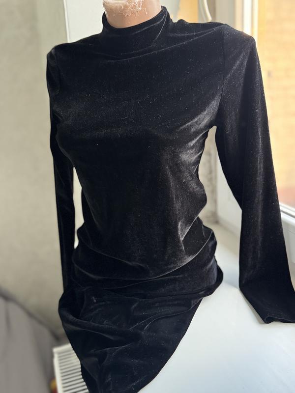 Чорна приталена сукня , оксамитова , з горлом, в розмірі с.