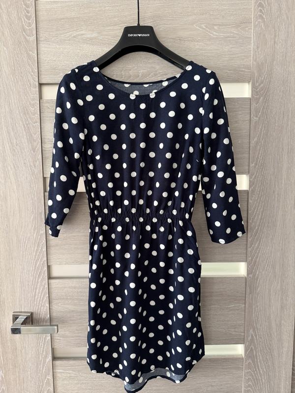 💙 Сукня в горох | XS | Темно-синя 💙 ✨ Легка та зручна сукня у класичний принт горох ✨ М’яка тканина, приємна до тіла ✨ Комфортна посадка на талії завдяки гумці Деталі: 👉 Розмір XS/S, напівохват талії 29 см, тягнеться за рахунок гумки до 42 см, довжина - 76 см 👉 Рукав 3/4, гумка на талії, злегка подовжений задній край 👉 Стан чудовий, без дефектів