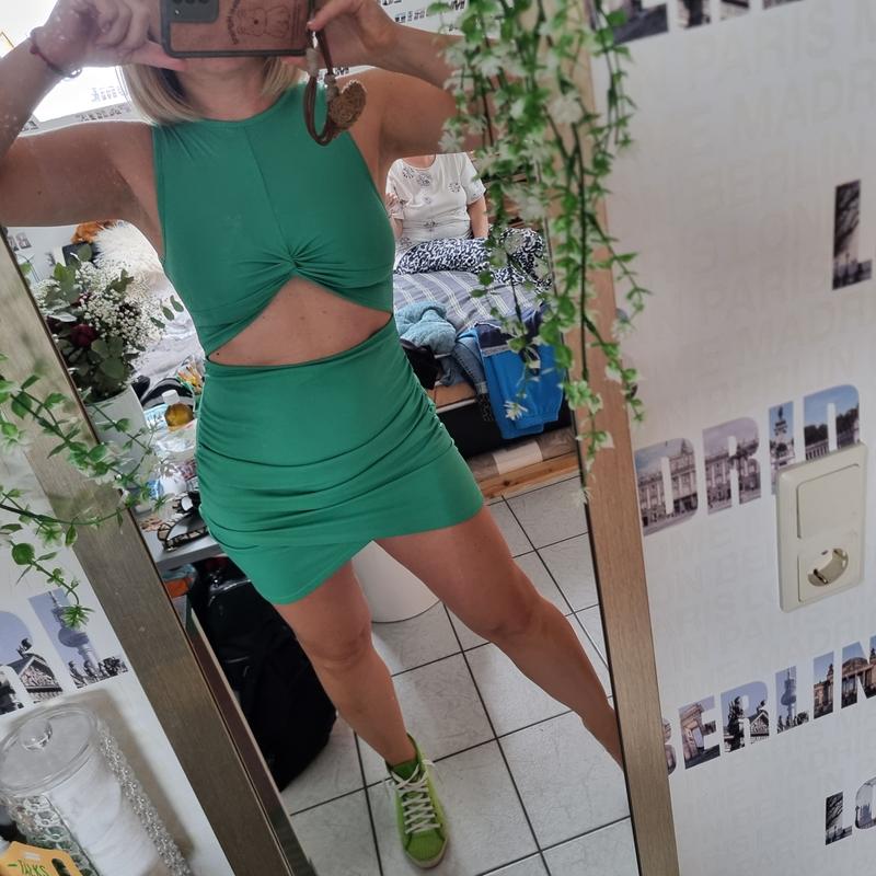 Летнее платье зеленого цвета. размер м мои параметры 93/73/102 по везде красиво но попе н...