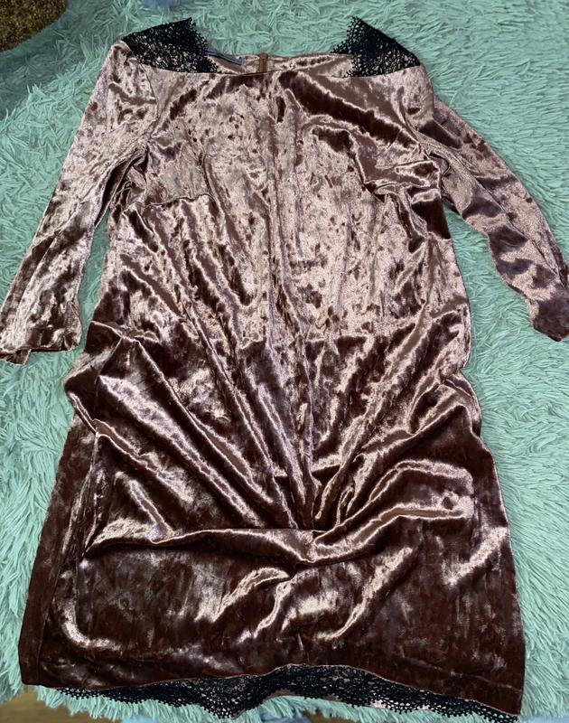 Красивое, эффектное платье. Средней длины, хотя может быть и до колена. Бархат приятный к телу, праздничная. Кружево на плечах и снизу. Вдягалась 3 рази. Очень эффектный цвет, переливается на свету.