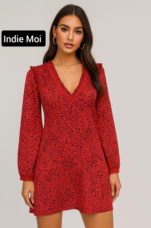 красивое женское платье мини красного цвета прямого кроя с длинными рукавами и v-образным вырезом, в идеальном состоянии 😉