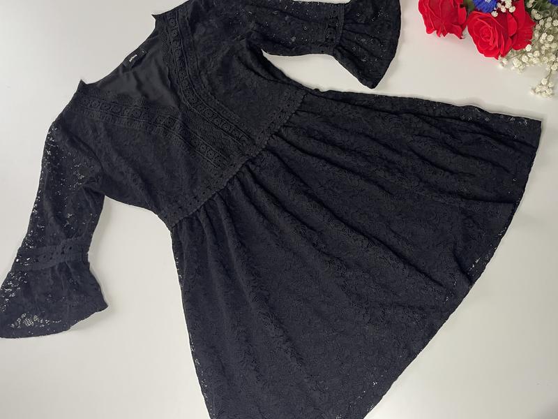 В ідеальному стані Не секонд Сукня дуже гарна - на свято З під бантиком Повністю кружево На розмір L можна М Півобхват грудей 47 тягнеться до 64 Рукав 46 Півобхват таліі 40 тягнеться до 45 Стегна вільні Довжина від плеча 88