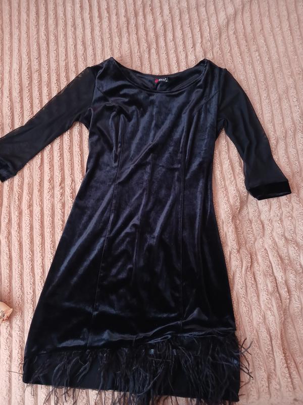 Платье почти новое, одетое 2-3 раза. Очень красивая с перьями внизу. Параметри ОГ 90, ОТ 76 см, ОБ 93 см. Еще Очень хорошо тянется.