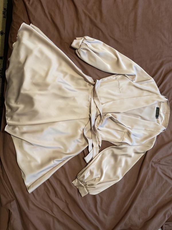 Продам сукню-халат, одягнена тільки в магазині, на запах, колір бежевий, на фото 2 - як виглядає на моделі