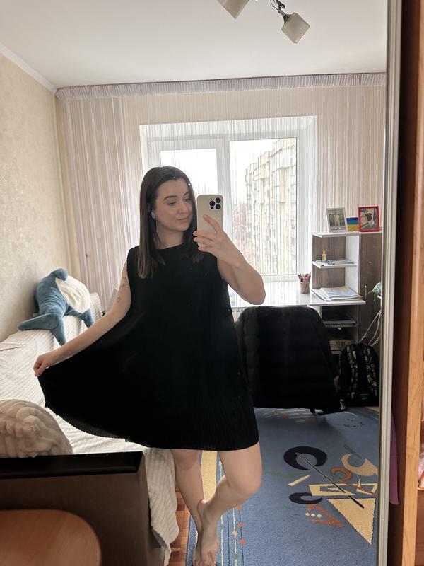 На розмір М-Л. Всередині підкладка, тому орієнтуюсь по ній, дуже гарно виглядає Заміри: довжина від плеча 89. Сукня йде вільна, там пліссе і підкладка. Є кармани по боках за прихованих застібках