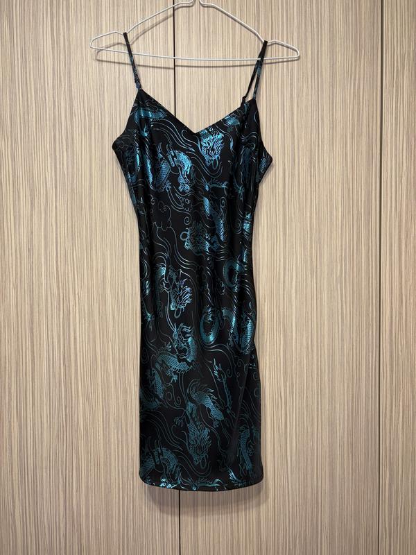 Коротка сукня Cropp на бретельках із принтом китайського дракона. Дуже гарно переливається на світлі✨ Розмір XS-S. Вдягала декілька раз, стан гарний. Без дефектів