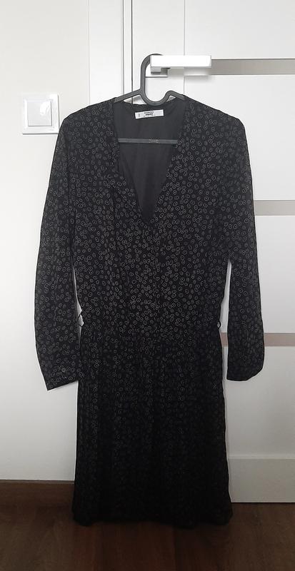 Платье Mango в отличном состоянии, дефектов нет, в использовании почти не было. Размер S Около колена или чуть выше. Идет с поясом. Юбка плиссированная. Искусственный шелк, по типу шифона, ткань легкая и полупрозрачная (есть подкладка, поэтому светится только на рукавах). Длина от плеча до низа 90 см.
