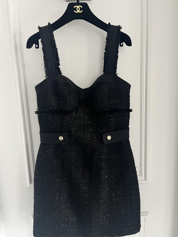Твідове плаття від guess з котоновими вкладками,довжина шлей регулюється.На підкладці.Дуже якісне і круте.Розмір вказаний м, в реалі на s