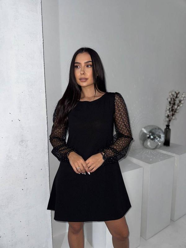 Сукня Модель 171 Тканина: креп дайвінг, сітка флок з блискітками Розмір: 42-44, 46-48, 50-52, 54-56 Колір: чорний ✨ Сукня, що підкорює з першого погляду ✨ Вільний крій, який елегантно сідає на будь-яку фігуру, та преміальний креп-дайвінг, що тримає форму й не обтягує — ідеальний тандем для комфортного образу. Ідеальна для корпоративів, свят, побачень і будь-якого вечора, коли хочеться виглядати особливо ✨