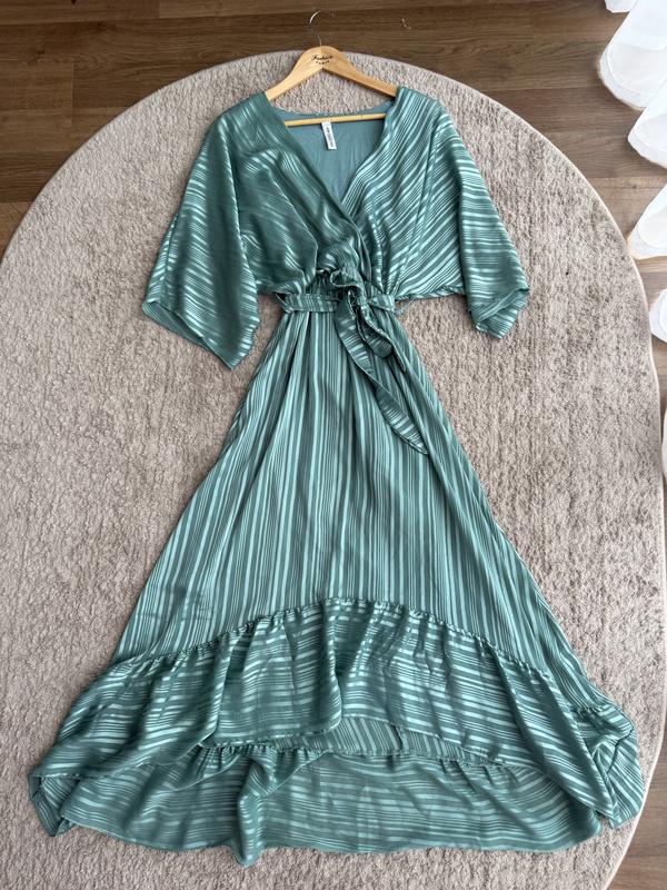 Сукня неймовірної краси, на жаль фото не може передати її вишуканість і елегантність. Довжина переду 117 см, позаду 130 см Напів обʼєм талії (на резинці) 30 см Напів обʼєм стегон 59 см Рукава летюча миш підійде під будь-який обʼєм грудей Зроблено в Італії, якість преміальна. Розмір не вказаний, іде як one size, фото на мені для прикладу - я розмір М, мені на М воно прям ідеально!