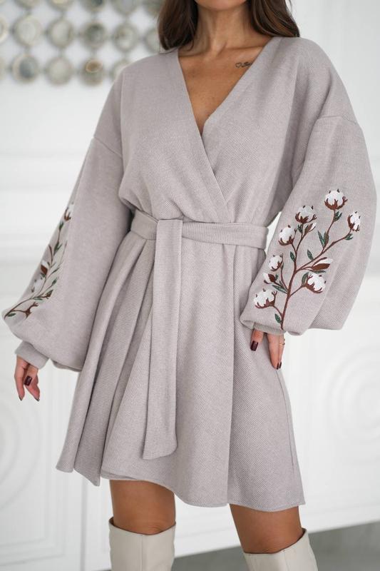 ‼️відправка 1/3 роб.дні. Оплата повністю або післяплата НП з передоплатою 200 грн‼️ Трикотажна сукня з вишитими об’ємними рукавами та поясом 📏 Розміри: • S–M (42–44) довжина 86 см • L–XL (46–48) довжина 90 см Кольора: Черний, серий, молочний, мокко, світлий-беж 🧵 Тканина: ангора двостороння Mustang (щільна, преміальна) 🎀 Пояс: знімний ✨ Талія: на резинці 🌺 Рукав: об’ємний, на манжеті, з квітковою вишивкою «бавовна» ⸻ Стильна та надзвичайно затишна сукня з преміальної двосторонньої ангори Mustang. Тканина м’яка, щільна та приємна до тіла, чудово тримає форму. М’який запах підкреслює декольте, талія на резинці забезпечує комфорт, а знімний пояс дозволяє легко моделювати пропорції. Головний акцент — розкішні об’ємні рукави, які створюють ефектний силует. Завдяки манжету рукав красиво формується, а виразна вишивка у вигляді гілочок бавовни робить кожен рух ніжним і естетичним.