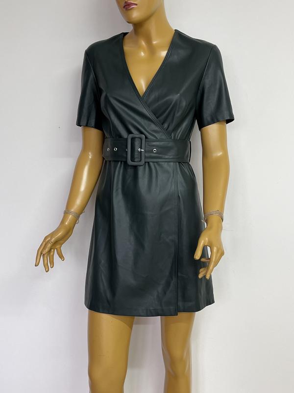 Zebra смарагдове шкіряне коротке плаття сарафан на запах з поясом еко шкіра зелене повсякд...
