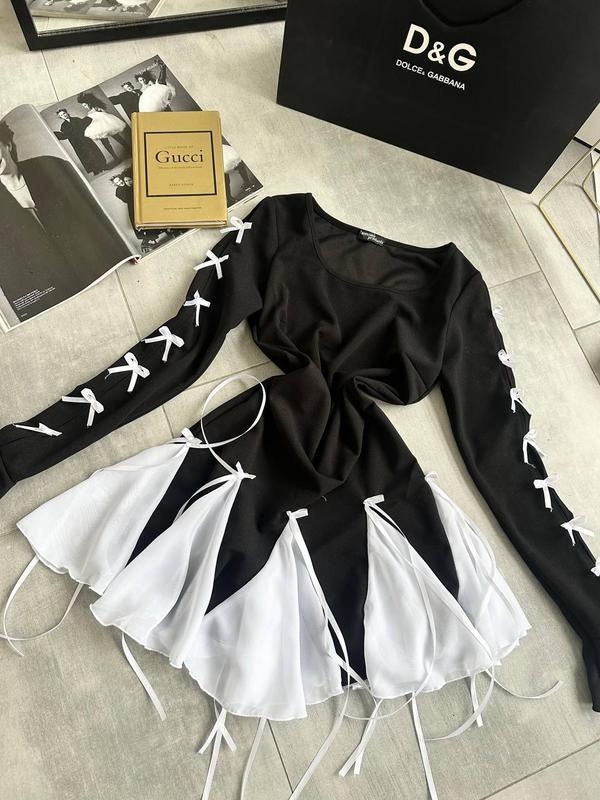 ХИТ, реал фото!!️В наличии в очень большом количестве!!️ Платье с ▪️Модель 437 ▫️Ткань: плотный и качественный креп дайвинг + шифон, Турция ▪️Цвет: черный ▫️Размер : Xs/S M/L Цена: грн Платье из плотного трикотажа по приятной цене с наиболее трендированным акцентом этого сезона.(г1436)вов Платье с бантиками, разбивающим сердечко