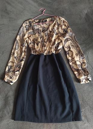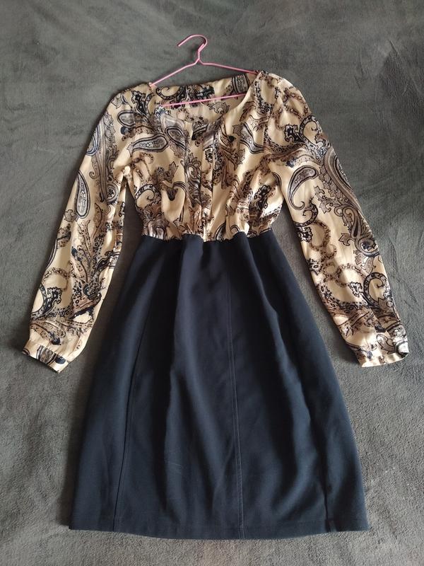 платье в офисном стиле, верх платья - шифон, юбка - трикотаж. Сбоку имеет застежку. идеально подойдет для работы в офисе или на прогулку с друзьями. замеры на фото.