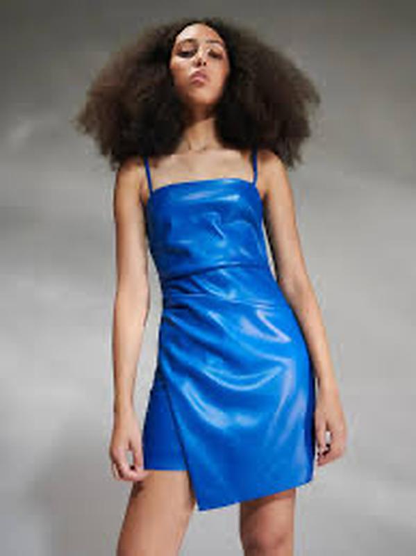 Стильна жіноча сукня на тонких бретелях з еко шкіри Розмір М, ХL