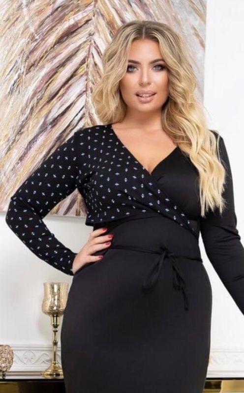 Сукня 05424.2 Матеріал: трикотажний креп, вставки – трикотаж , імітація запаху. Виміри: 💥54-56: ог 106-112, от 80-95, об 110-120